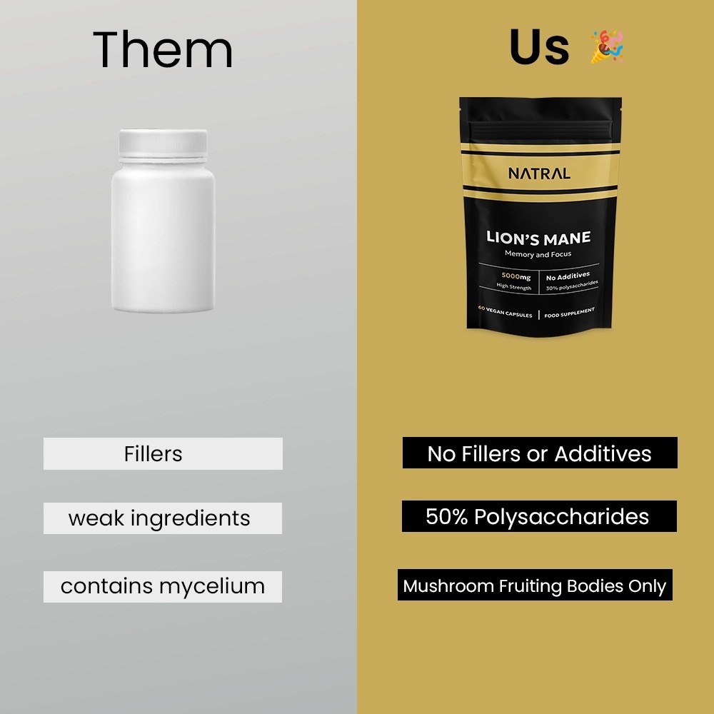 10:1 extract ratio, delivering a powerful dose of Lion’s Mane in every capsule.
